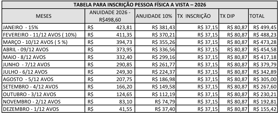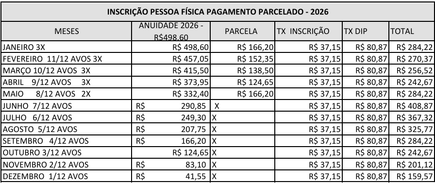 Confira os valores para primeira inscrição e reinscrição, com pagamentos à vista ou parcelado no boleto.